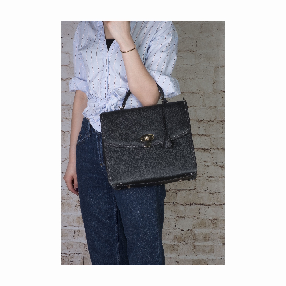 Daria is a square handbag Made in Italy by Bellini. Pebbled calf leather, gold plated fittings.