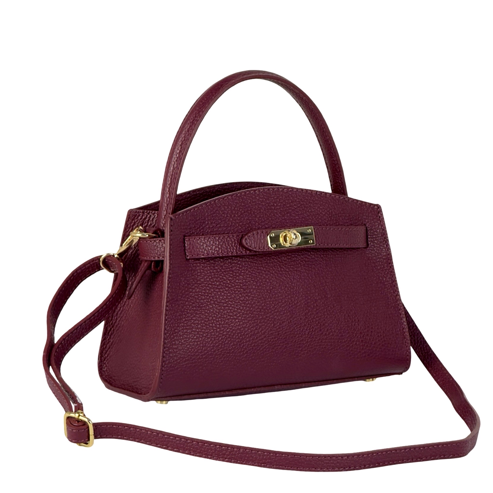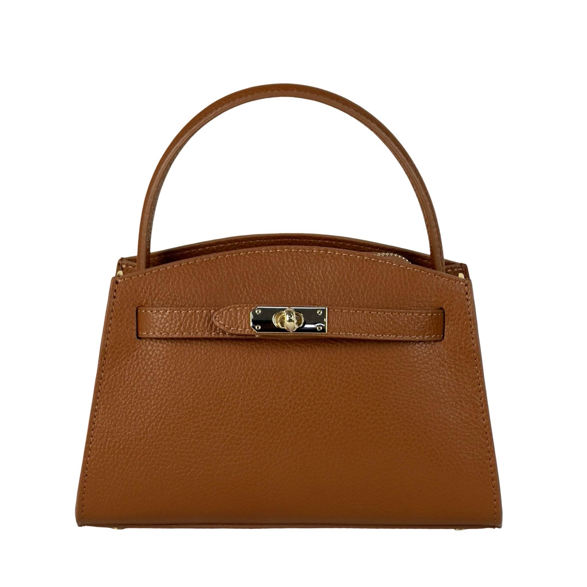 A compact pebbled leather handbag with crossbody strap.Ā A clever and stilish design which is practical for all occasions. The front straps and lock add a touch of elegance.