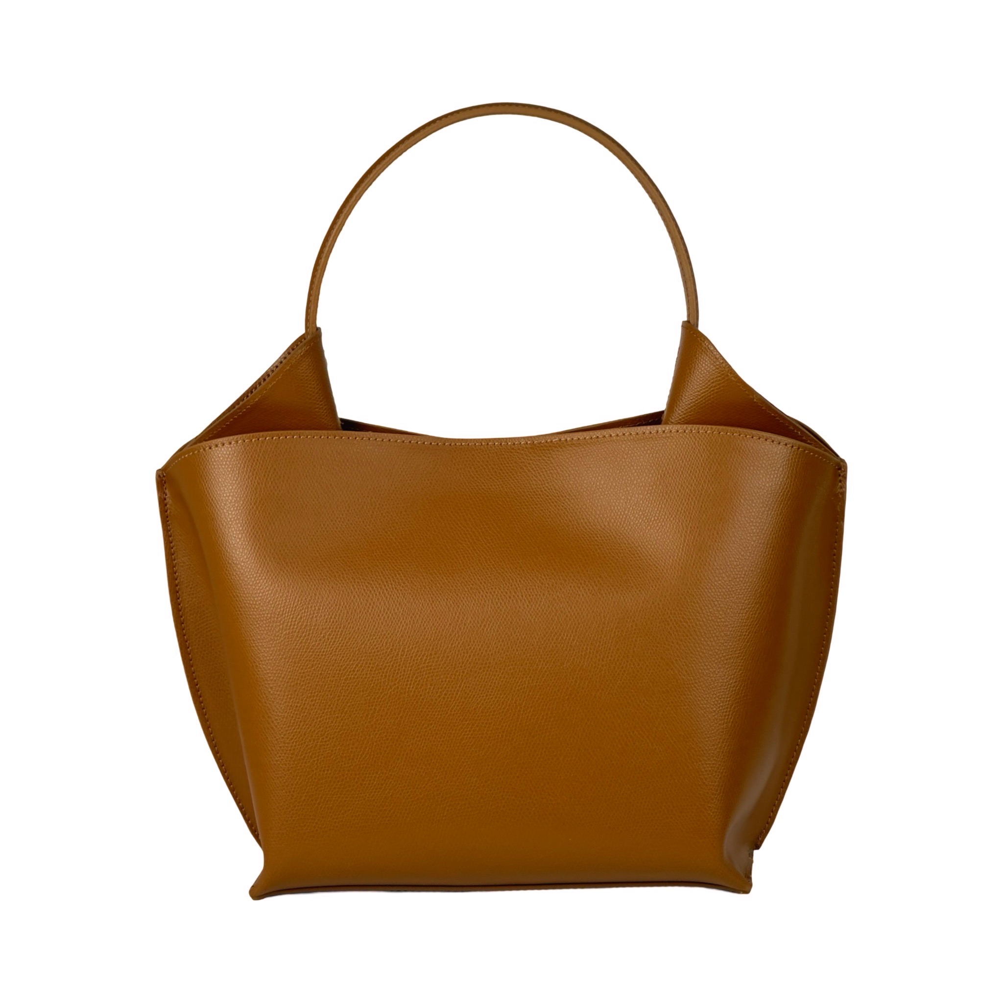 A medium sized contemporary design handbag in pebbled leather available in a range of trendy colours.Ā Ā A detachable leather crossbody strap is also provided.