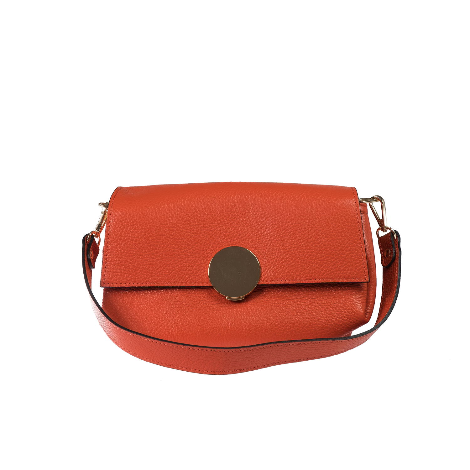 Compact pebbled leather shoulder bag / crossbody bag.Ā  Double, detachable shoulder strap and adjustable crossbody strap are provided.