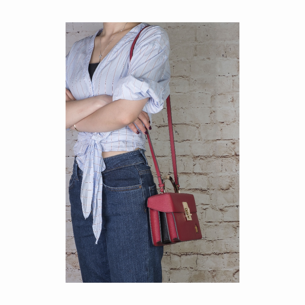 Vanessa is a crossbody bag by Bellini. Genuine leather, Made in Italy. This bag has a triple gusset and has two colours and an original top flap closure. Saffiano calf leather.