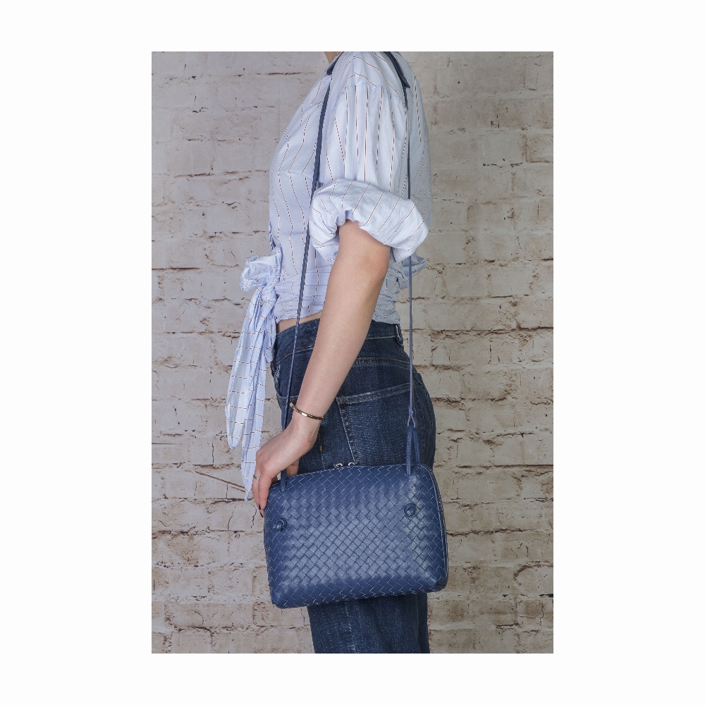 Veronica is a woven leather crossbody bag by Bellini. made in Italy.